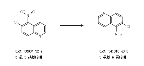 1.通过6-氯-5-硝基喹啉合成5-氨基-6-氯喹啉