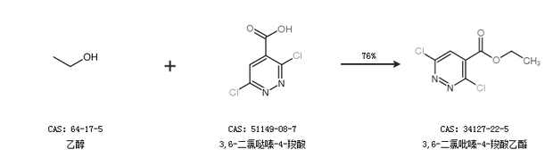 1.通过乙醇和3,6-二氯哒嗪-4-羧酸合成3,6-二氯吡嗪-4-羧酸乙酯,收率约76%;