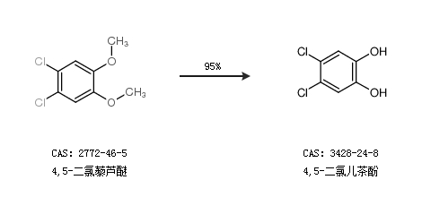 2.通过4,5-二氯藜芦醚合成4,5-二氯儿茶酚,收率约95%;