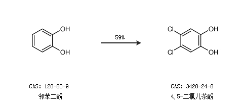1.通过邻苯二酚合成4,5-二氯儿茶酚,收率约59%;