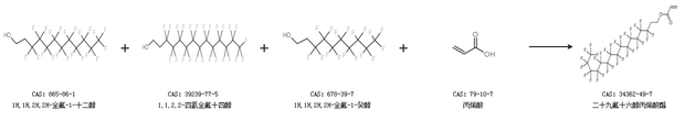2.通过1H,1H,2H,2H-全氟-1-十二醇、1,1,2,2-四氢全氟十四醇、1H,1H,2H,2H-全氟-1-癸醇和丙烯酸合成二十九氟十六醇丙烯酸酯