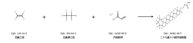 1.通过四氟乙烯、五氟碘乙烷和丙烯酸钾合成二十九氟十六醇丙烯酸酯