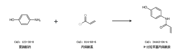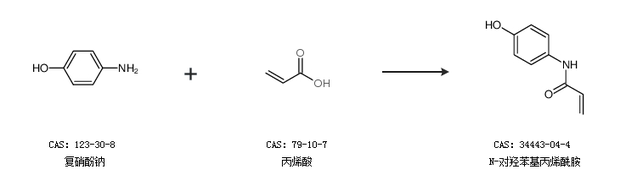 1.通过复硝酚钠和丙烯酸合成N-对羟苯基丙烯酰胺
