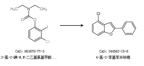 2.通过3-氯-2-碘-N,N-二乙基氨基甲酸苯酯合成4-氯-2-苯基苯并呋喃