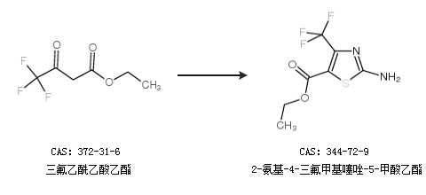 2.通过三氟乙酰乙酸乙酯合成2-氨基-4-三氟甲基噻唑-5-甲酸乙酯