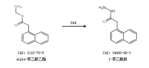1.通过alpha-萘乙酸乙酯合成1-萘乙酰肼,收率约84%;