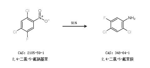 1.通过2,4-二氯-5-氟硝基苯合成2,4-二氯-5-氟苯胺,收率约91%;