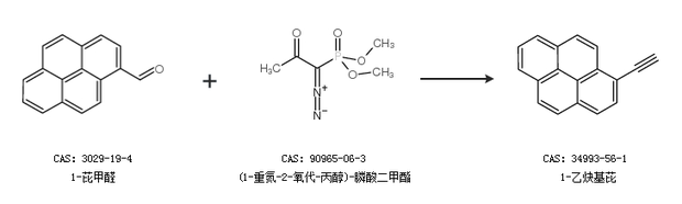 2.通过1-芘甲醛和(1-重氮-2-氧代-丙醇)-膦酸二甲酯合成1-乙炔基芘