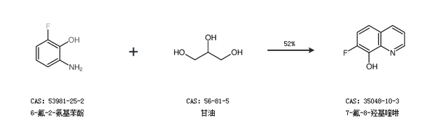 1.通过6-氟-2-氨基苯酚和甘油合成7-氟-8-羟基喹啉,收率约52%;