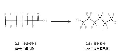1.通过7H-十二氟庚酸合成1,6-二氯全氟己烷