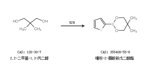 2.通过2,2-二甲基-1,3-丙二醇合成噻吩-2-硼酸新戊二醇酯,收率约92%;