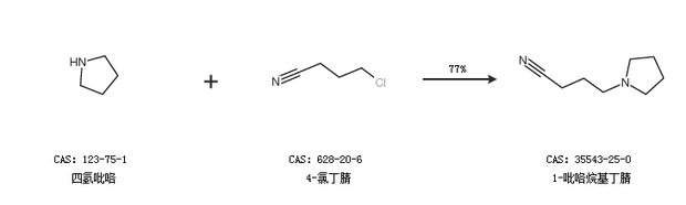 1.通过四氢吡咯和4-氯丁腈合成1-吡咯烷基丁腈,收率约77%;