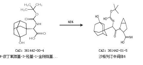 1.通过N-叔丁氧羰基-3-羟基-1-金刚烷基-D-甘氨酸合成沙格列汀中间体6,收率约46%;