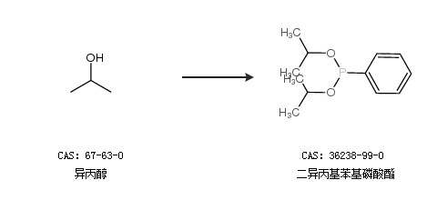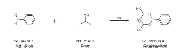1.通过苯基二氯化磷和异丙醇合成二异丙基苯基磷酸酯,收率约73%;