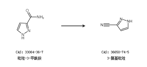 1.通过吡唑-3-甲酰胺合成3-腈基吡唑