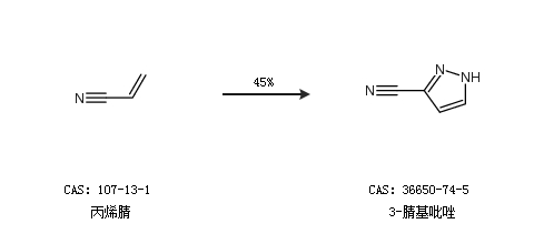 2.通过丙烯腈合成3-腈基吡唑,收率约45%;
