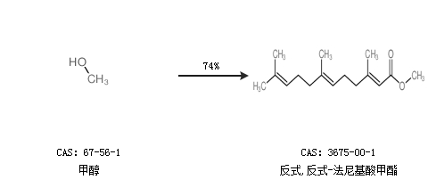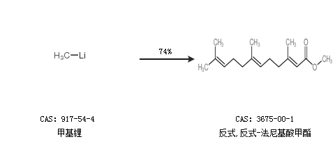 1.通过甲基锂合成反式,反式-法尼基酸甲酯,收率约74%;