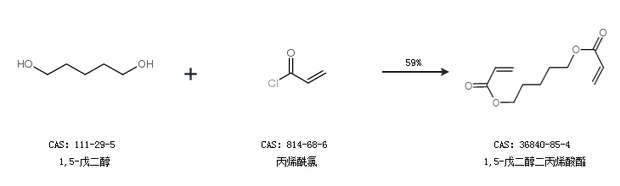 2.通过1,5-戊二醇和丙烯酰氯合成1,5-戊二醇二丙烯酸酯,收率约59%;