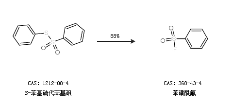 2.通过S-苯基硫代苯基砜合成苯磺酰氟,收率约88%;