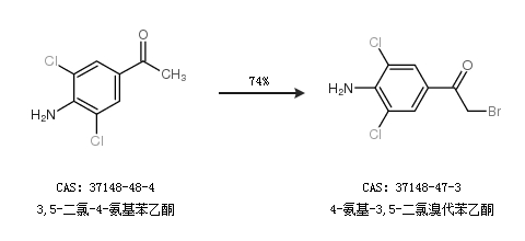 1.通过3,5-二氯-4-氨基苯乙酮合成4-氨基-3,5-二氯溴代苯乙酮,收率约74%;