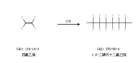 2.通过四氟乙烯合成1,6-二碘代十二氟己烷,收率约11%;