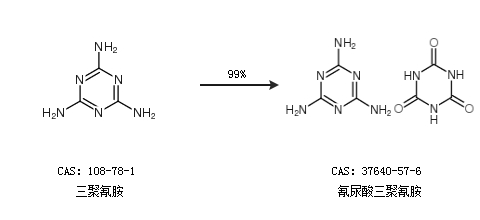 1.通过三聚氰胺合成氰尿酸三聚氰胺,收率约99%;
