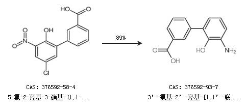 1.通过5-氯-2-羟基-3-硝基-(1,1-联苯)-3-羧酸合成3’-氨基-2’-羟基-[1,1’-联苯]-3-甲酸,收率约89%;