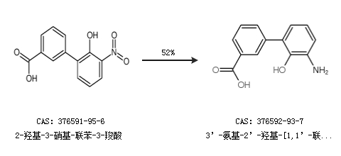 2.通过2-羟基-3-硝基-联苯-3-羧酸合成3’-氨基-2’-羟基-[1,1’-联苯]-3-甲酸,收率约52%;