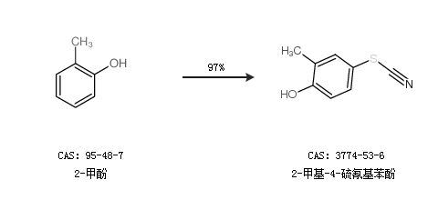 2.通过2-甲酚合成2-甲基-4-硫氰基苯酚,收率约97%;