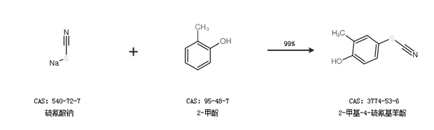 1.通过硫氰酸钠和2-甲酚合成2-甲基-4-硫氰基苯酚,收率约99%;