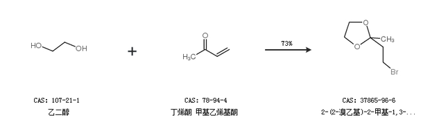 2.通过乙二醇和丁烯酮 甲基乙烯基酮合成2-(2-溴乙基)-2-甲基-1,3-二恶茂烷,收率约73%;