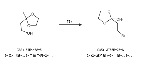 1.通过2-(2-甲基-1,3-二氧杂烷-2-基)乙醇合成2-(2-溴乙基)-2-甲基-1,3-二恶茂烷,收率约73%;