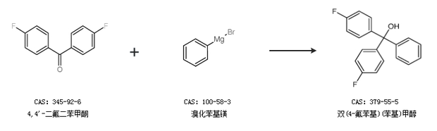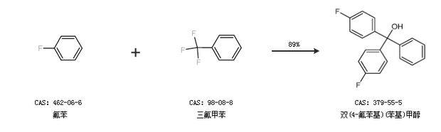 2.通过氟苯和三氟甲苯合成双(4-氟苯基)(苯基)甲醇,收率约89%;