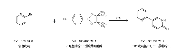 1.通过邻溴吡啶和2-羟基吡啶-5-硼酸频哪醇酯合成5-(2-吡啶基)-1,2-二氢吡啶-2-酮,收率约67%;