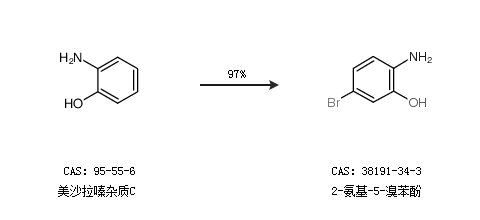 2.通过美沙拉嗪杂质C合成2-氨基-5-溴苯酚,收率约97%;