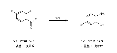 1.通过2-硝基-5-溴苯酚合成2-氨基-5-溴苯酚,收率约98%;