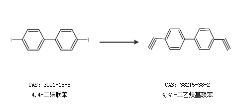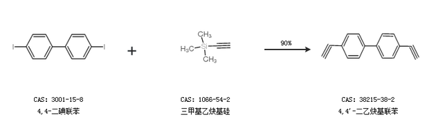 1.通过4,4-二碘联苯和三甲基乙炔基硅合成4,4''-二乙炔基联苯,收率约90%;