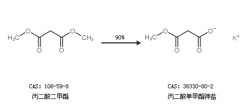 1.通过丙二酸二甲酯合成丙二酸单甲酯钾盐,收率约90%;