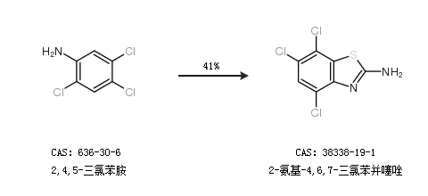 1.通过2,4,5-三氯苯胺合成2-氨基-4,6,7-三氯苯并噻唑,收率约41%;