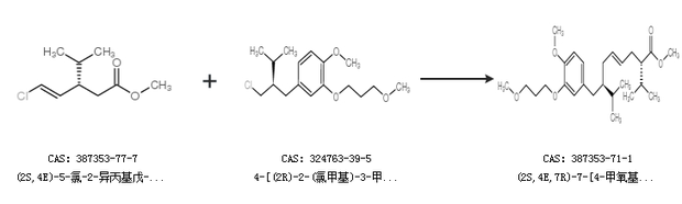 英文别名 (2S,7R,E)-methyl 2-isopropyl-7-(4-methoxy-3-(3-methoxypropoxy)benzyl)-8-methylnon-4-enoate;(2S,4E,7R)-7-[[4-Methoxy-3-(3-methoxypropoxy)phenyl]methyl]-8-methyl-2-(1-methylethyl)-4-nonenoic acid methyl ester;