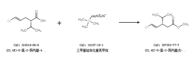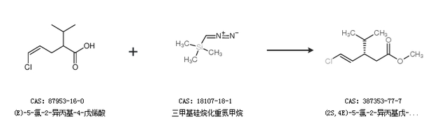 2.通过(2S,4E)-5-氯-2-异丙基-4-戊烯酸和三甲基硅烷化重氮甲烷合成(2S,4E)-5-氯-2-异丙基戊-4-烯酸甲酯