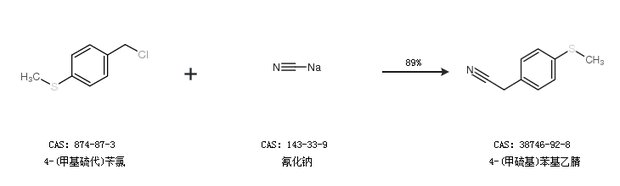 2.通过4-(甲基硫代)苄氯和氰化钠合成4-(甲硫基)苯基乙腈,收率约89%;