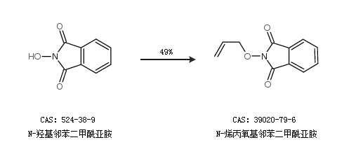 2.通过N-羟基邻苯二甲酰亚胺合成N-烯丙氧基邻苯二甲酰亚胺,收率约49%;