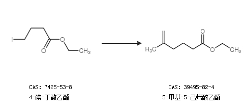 1.通过4-碘-丁酸乙酯合成5-甲基-5-己烯酸乙酯