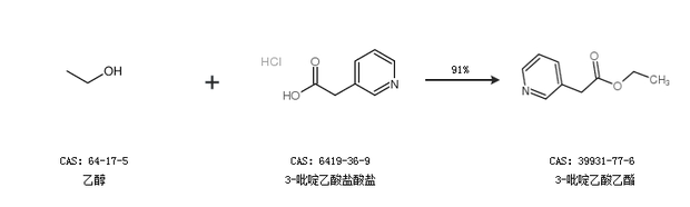 2.通过乙醇和3-吡啶乙酸盐酸盐合成3-吡啶乙酸乙酯,收率约91%;