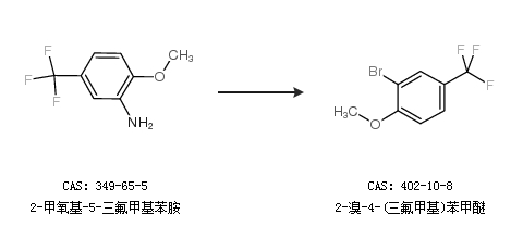 2.通过2-甲氧基-5-三氟甲基苯胺合成2-溴-4-(三氟甲基)苯甲醚