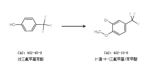1.通过对三氟甲基苯酚合成2-溴-4-(三氟甲基)苯甲醚
