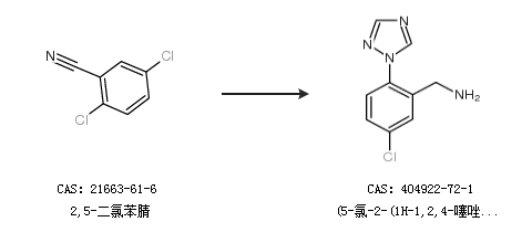 1.通过2,5-二氯苯腈合成(5-氯-2-(1H-1,2,4-噻唑-1-基)苯基)甲胺