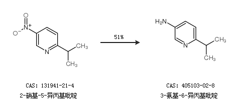 1.通过2-硝基-5-异丙基吡啶合成3-氨基-6-异丙基吡啶,收率约51%;