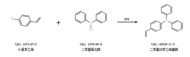 2.通过4-氯苯乙烯和二苯基氯化膦合成二苯基对苯乙烯基膦,收率约95%;